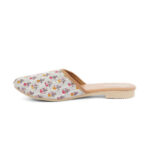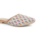 Layered from toe to heel in intricate & exquisite details, the ‘Cherry’ mules will take you on an enchanting trip through the tiny by-lanes of Rajasthan. The skillfully handcrafted jutti with exquisite bead work on Block printed fabric is an epitome of style & heritage.