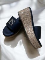 Be style ready with our handmade LS Black vegan wedges. This is the perfect combination of style with comfort for women as it is crafted with comfy cushioned sole. Feel very soft to your feet . Additionally sequence heels add glam to your casual touch.