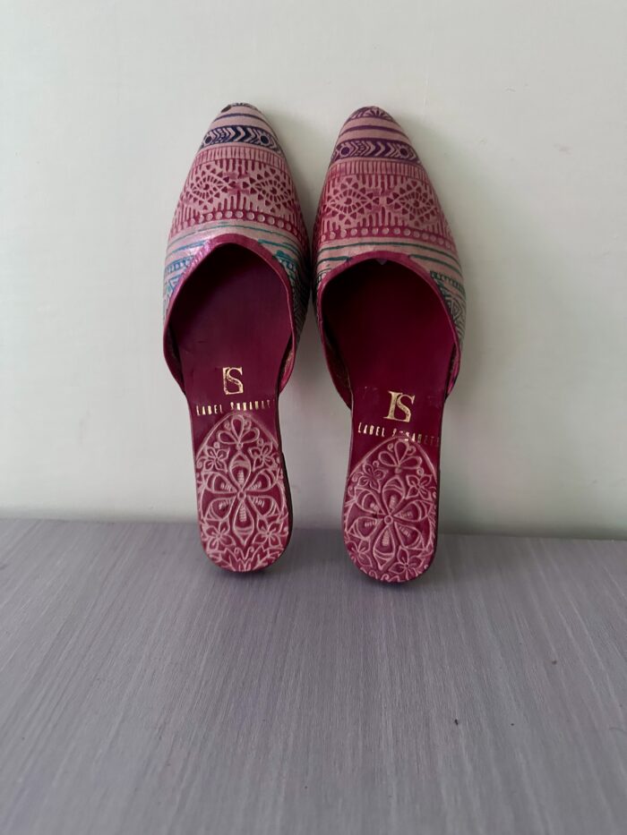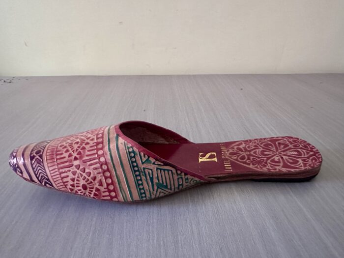 “Indulge in the artistry of our hand-painted Mule chappals, crafted with love on genuine leather. Originating from the cultural heartland of Kolhapur, with ‘Maroon Chitrakari‘ pair is a testament to the cherished tradition.