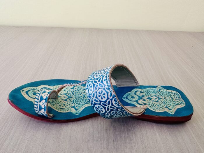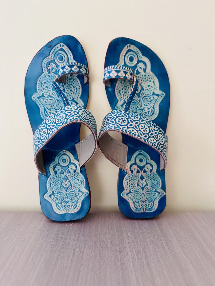 “Indulge in the artistry of our hand-painted Kolhapuri chappals, crafted with love on genuine leather. Originating from the cultural heartland of Kolhapur, with ‘NEELA DORI ART‘ pair is a testament to the cherished tradition.